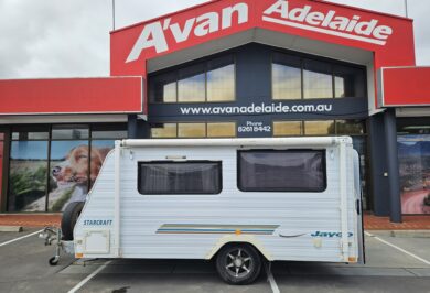 Perfect for couples or solo travellers, this Jayco Starcraft Rear Entry Pop Top offers comfort, convenience, and easy towing at a great price.