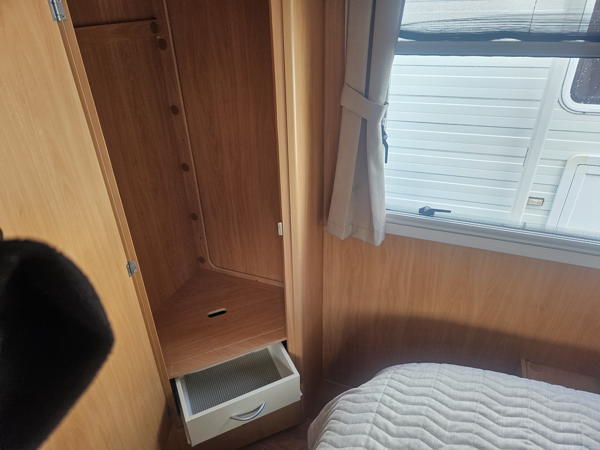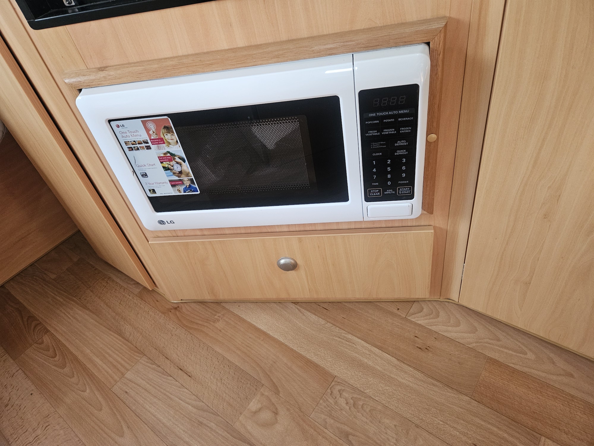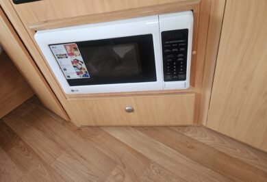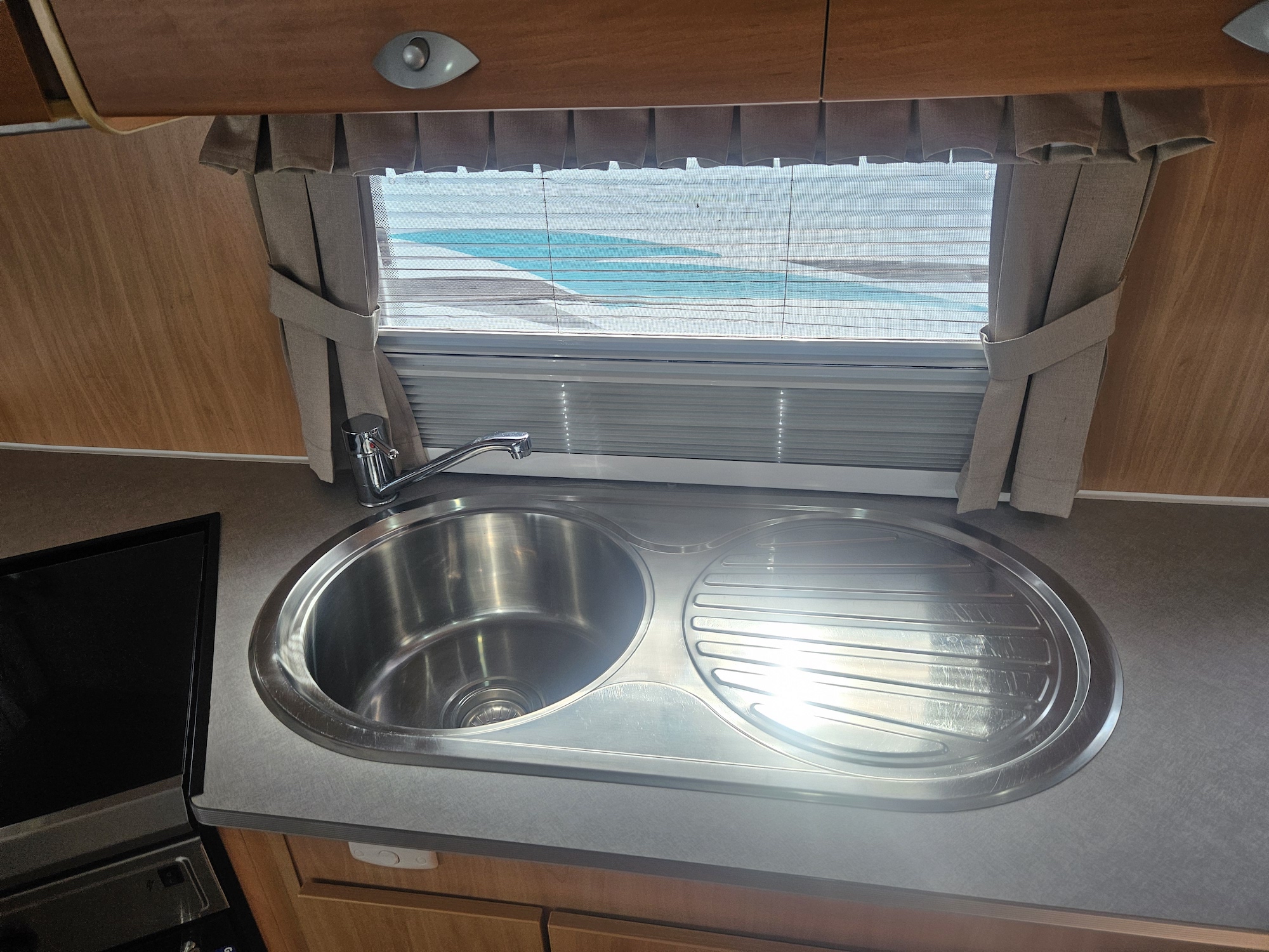 Inside, you’ll find a well-equipped kitchen with cooktop, griller, microwave, fridge, and sink, along with air conditioning to keep you comfortable year-round. Clever storage solutions, including under-bed storage and a wardrobe, make packing for trips simple and stress-free.