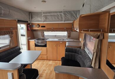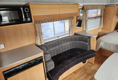 Poptops are a great choice for travellers who want something easy to tow, store, and set up — and the Aspire 525 does it all without compromising on comfort. Step inside and you’ll find a smart layout with an island bed, spacious club lounge, and practical kitchen complete with a cooktop, microwave, sink, and pull-out pantry. There’s plenty of clever storage, including under-bed space and a front boot, so you can pack for longer stays.