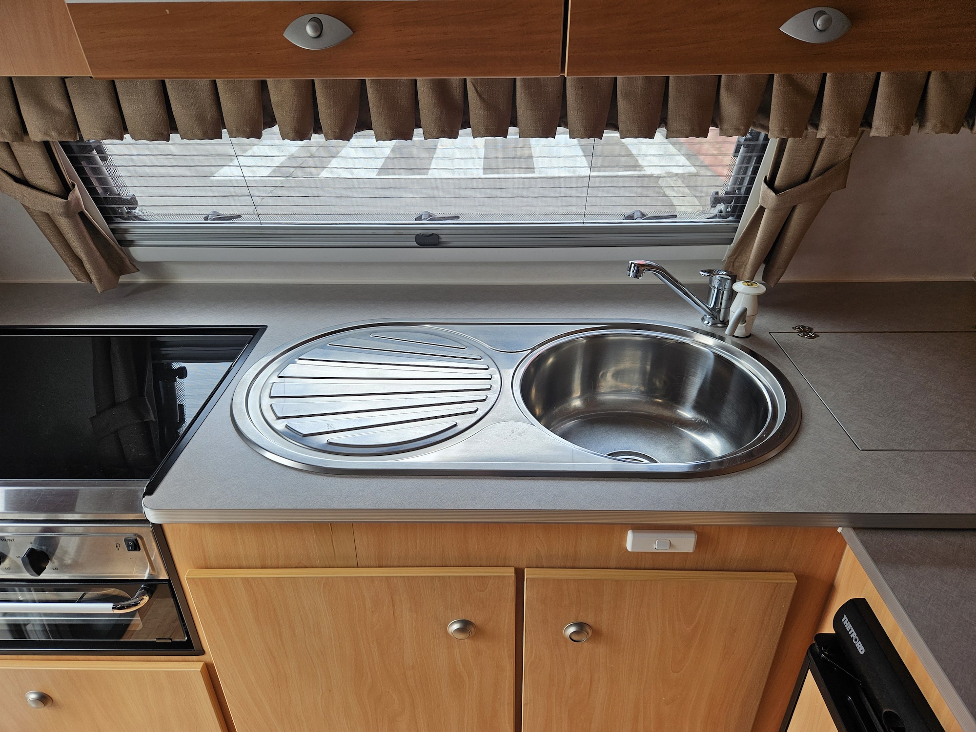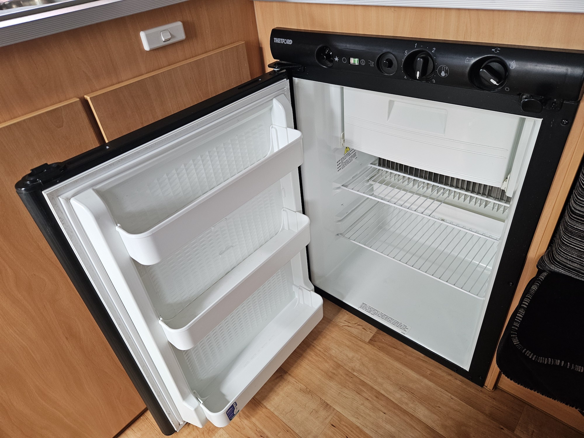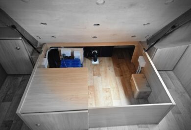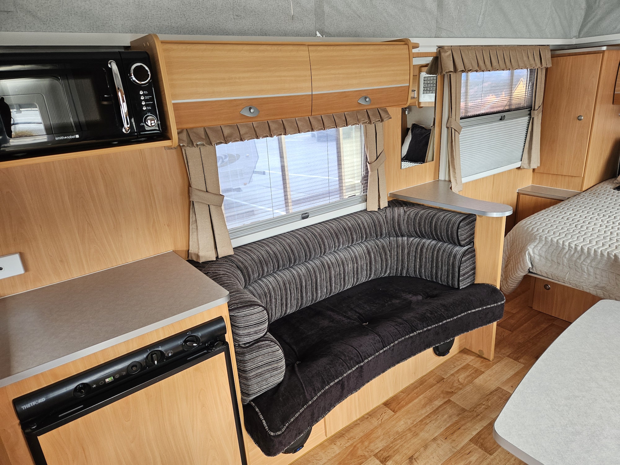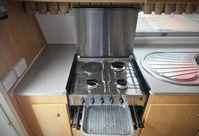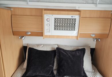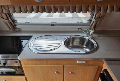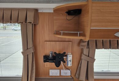 Designed for two, it’s fitted with air conditioning, stereo, TV arm, LED lighting, and all the essentials to make life on the road relaxed and comfortable.