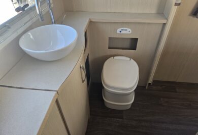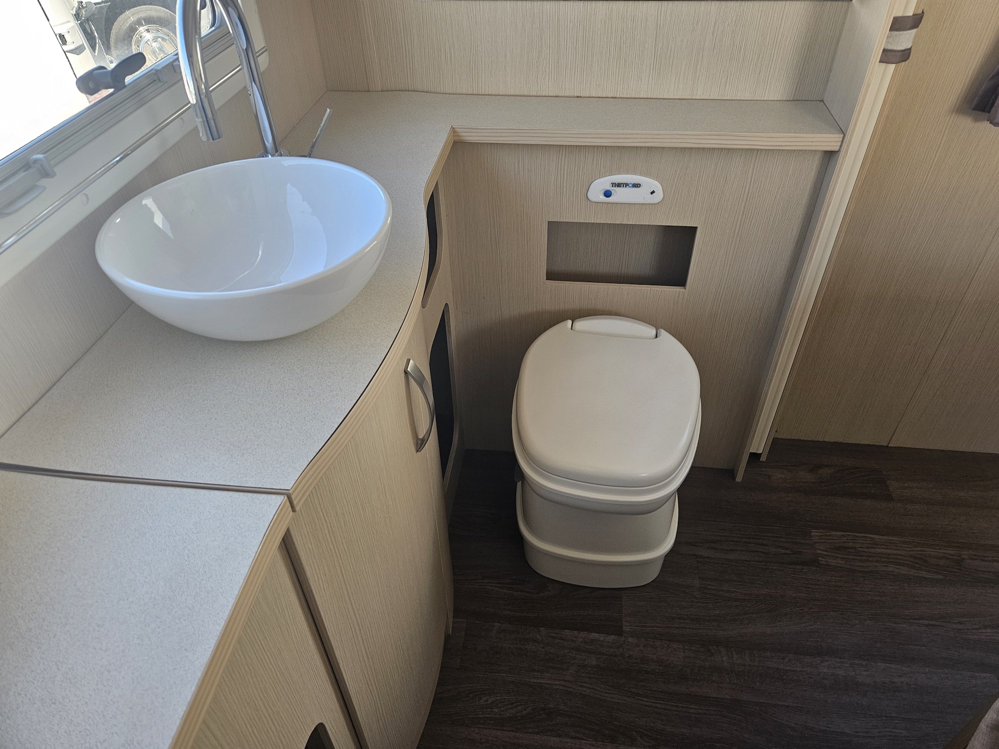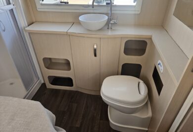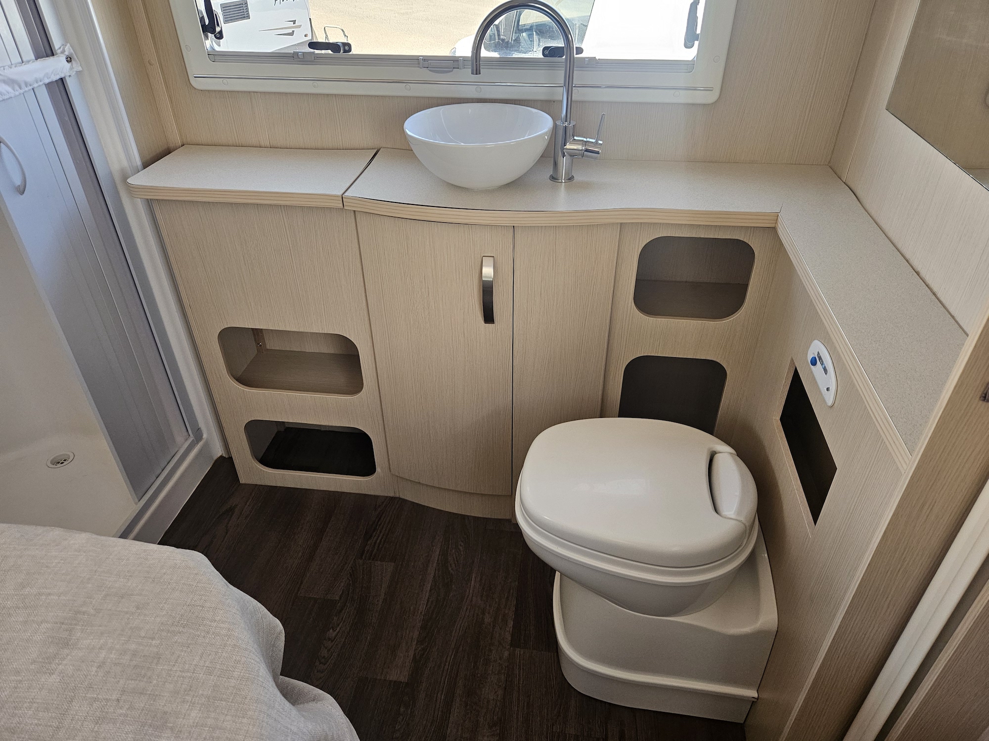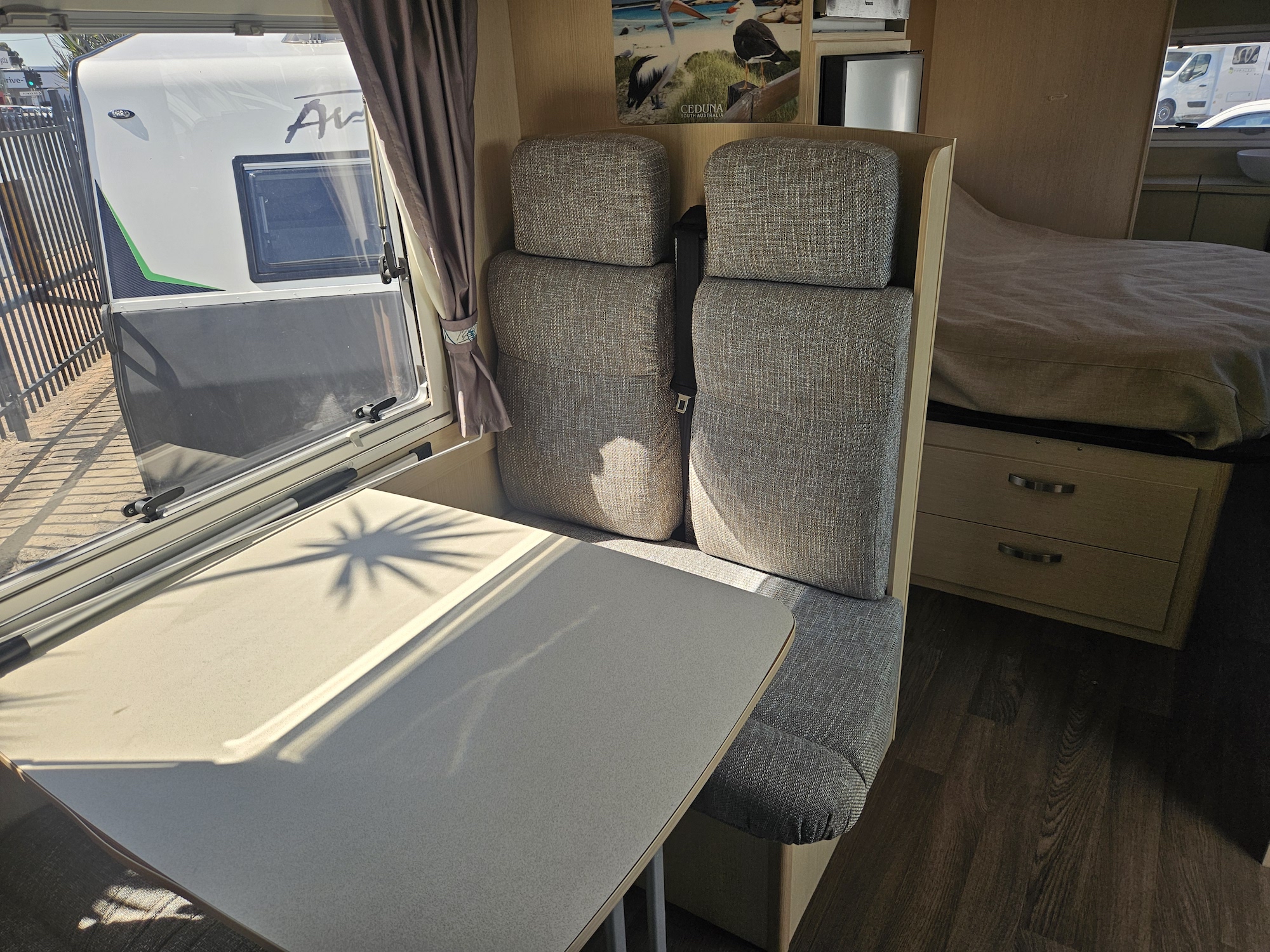 Inside, it’s set up for comfortable touring with an island bed, café dinette and swivel front seats that open up the living space. The full ensuite includes a separate shower, toilet and vanity, giving you proper comfort on the road.