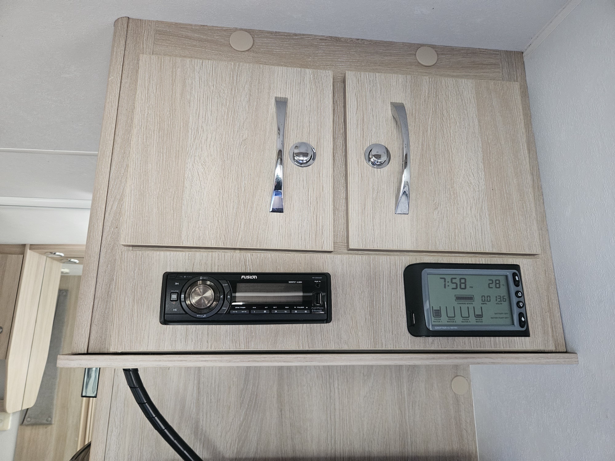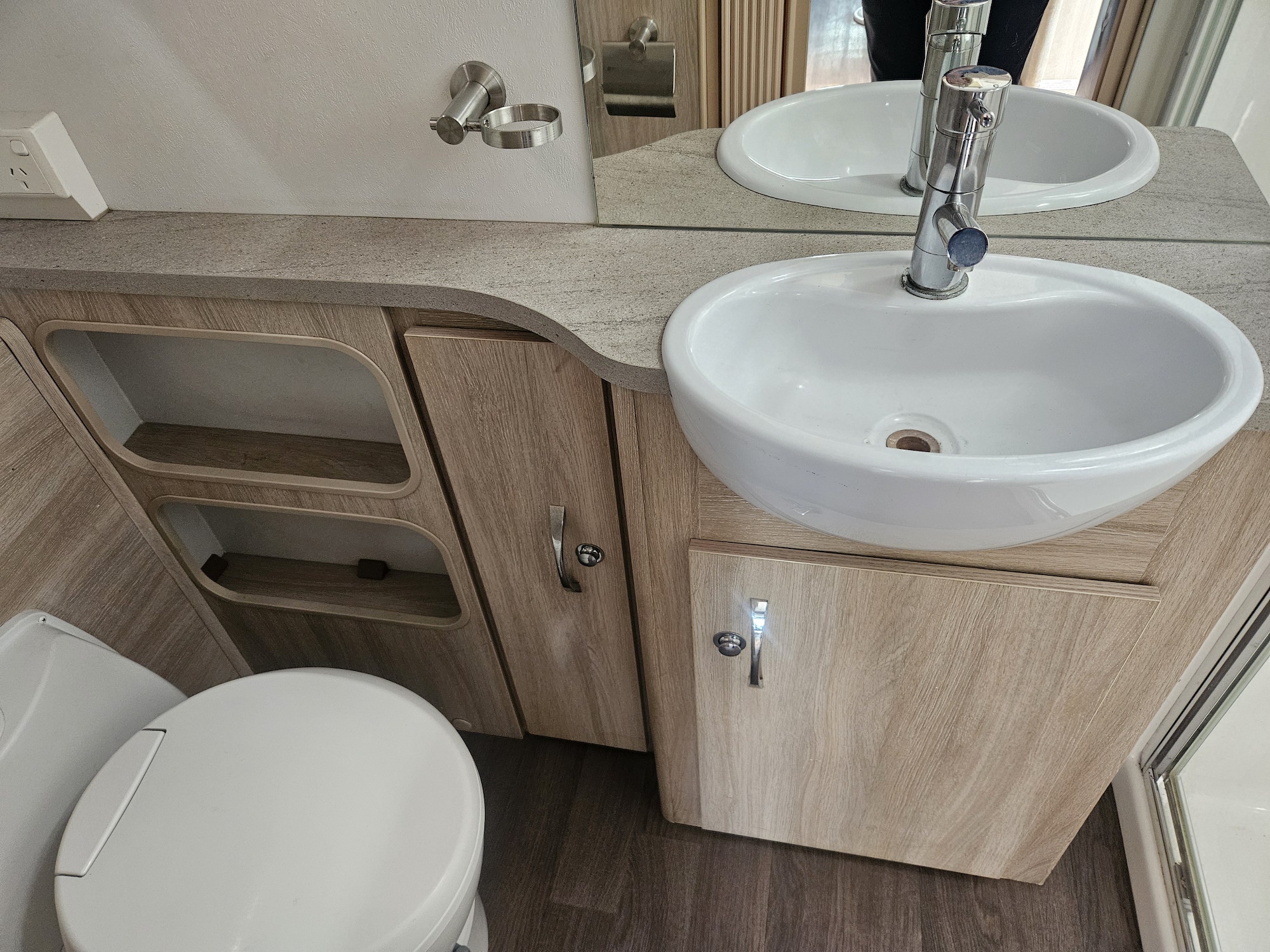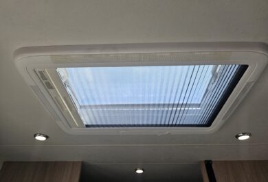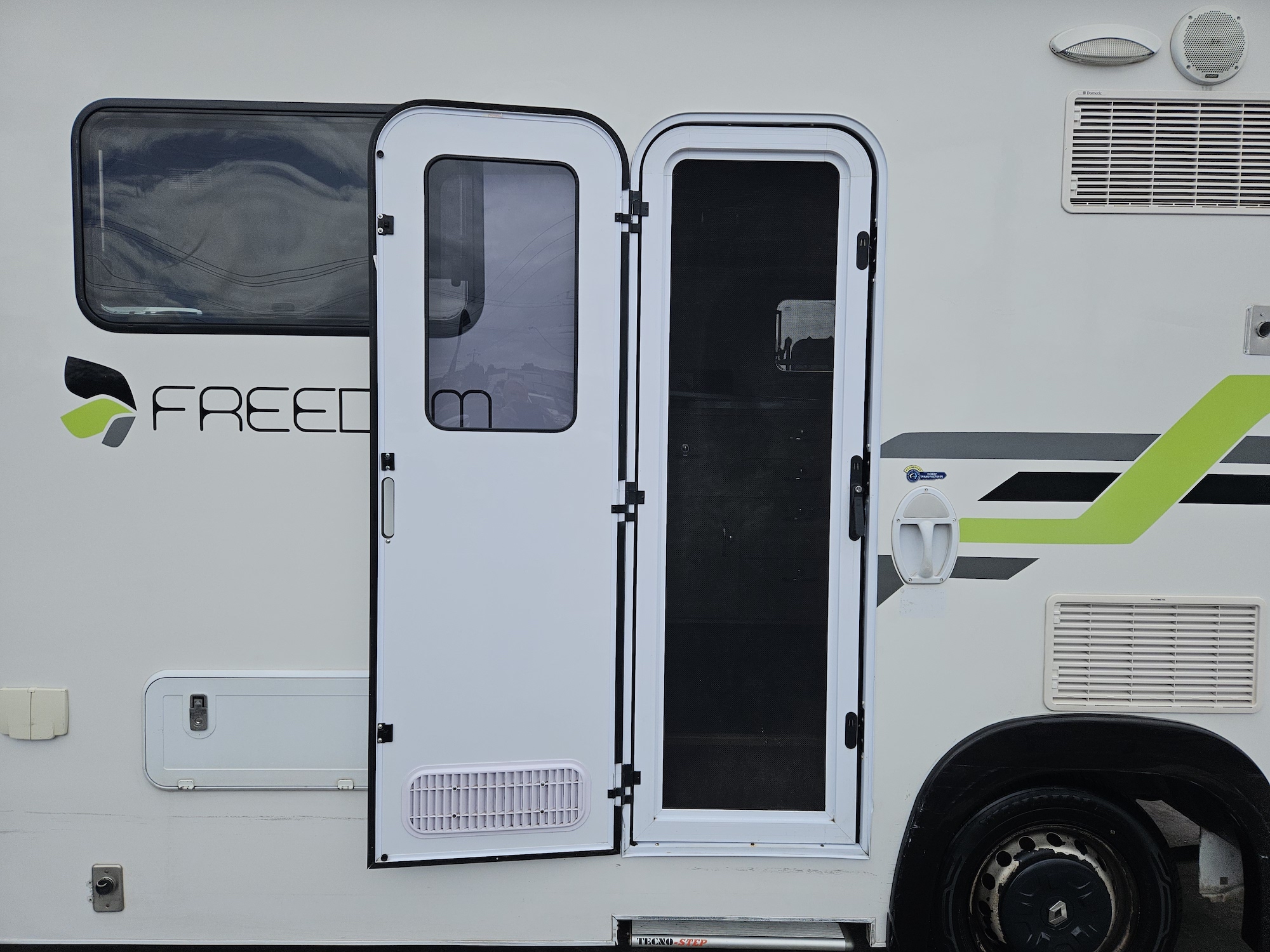 Off-grid friendly with solar power, house battery, fresh and grey water tanks, plus gas and electric hot water. Outside, enjoy the Fiamma awning, external storage, outdoor 12V TV point and electric step for easy access.