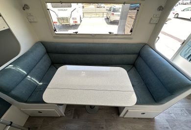 This van has just arrived and is catered for the holidaying family. Queen fold out bed at the front with 2 bunks at the rear, if needed the huge club lounge can also be converted to a bed allowing you to sleep up to 5 comfortably and don’t worry there is plenty of storage inside and out for everything you need to take along.