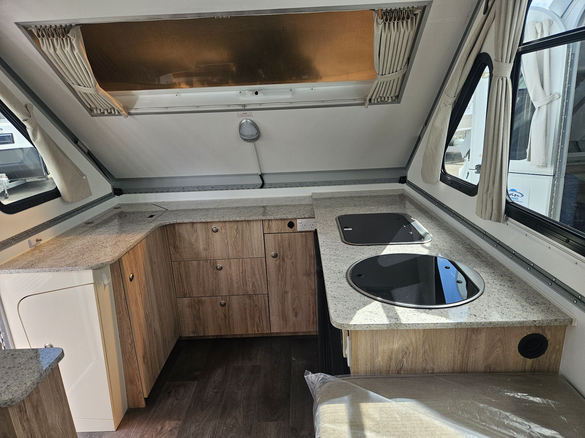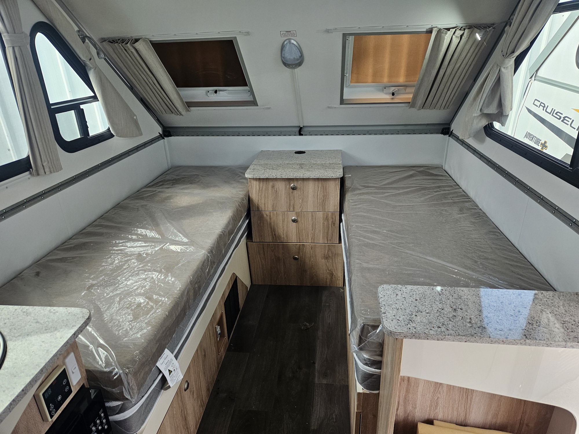 You’ll stay comfortable in all conditions with reverse cycle air conditioning, while large winding dome windows at the front and rear bring in plenty of natural light.