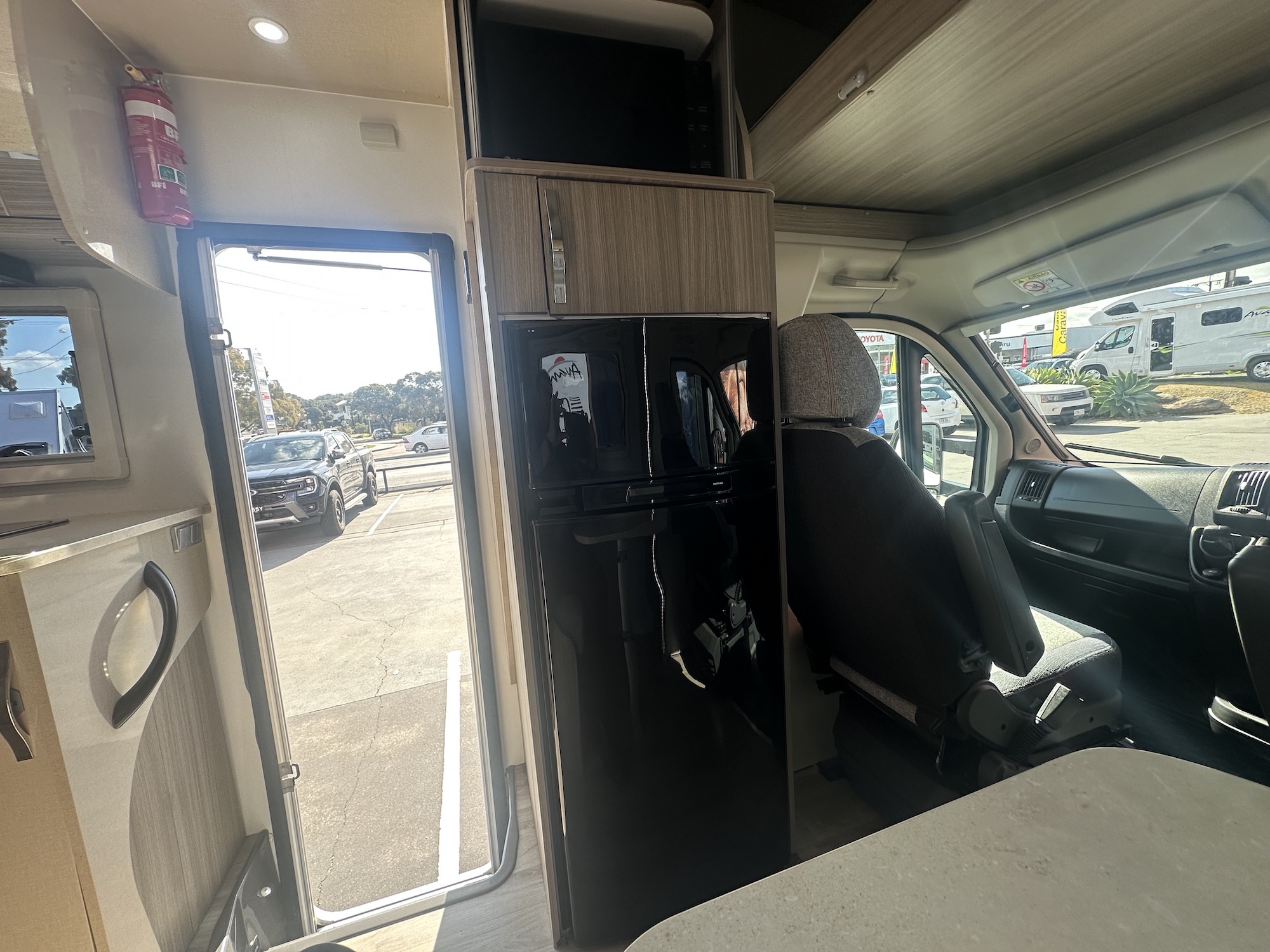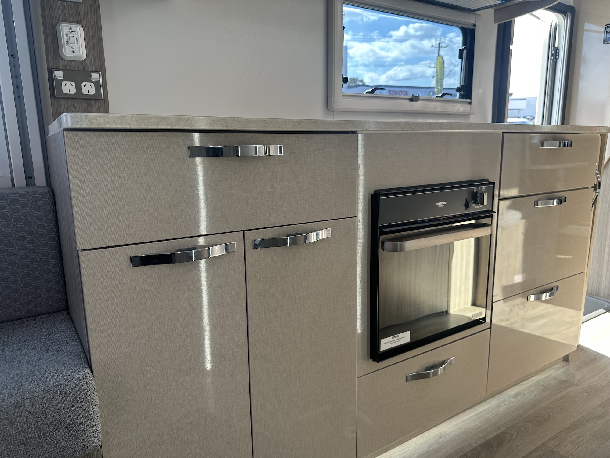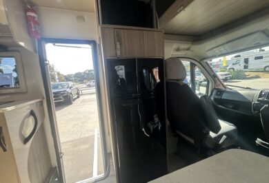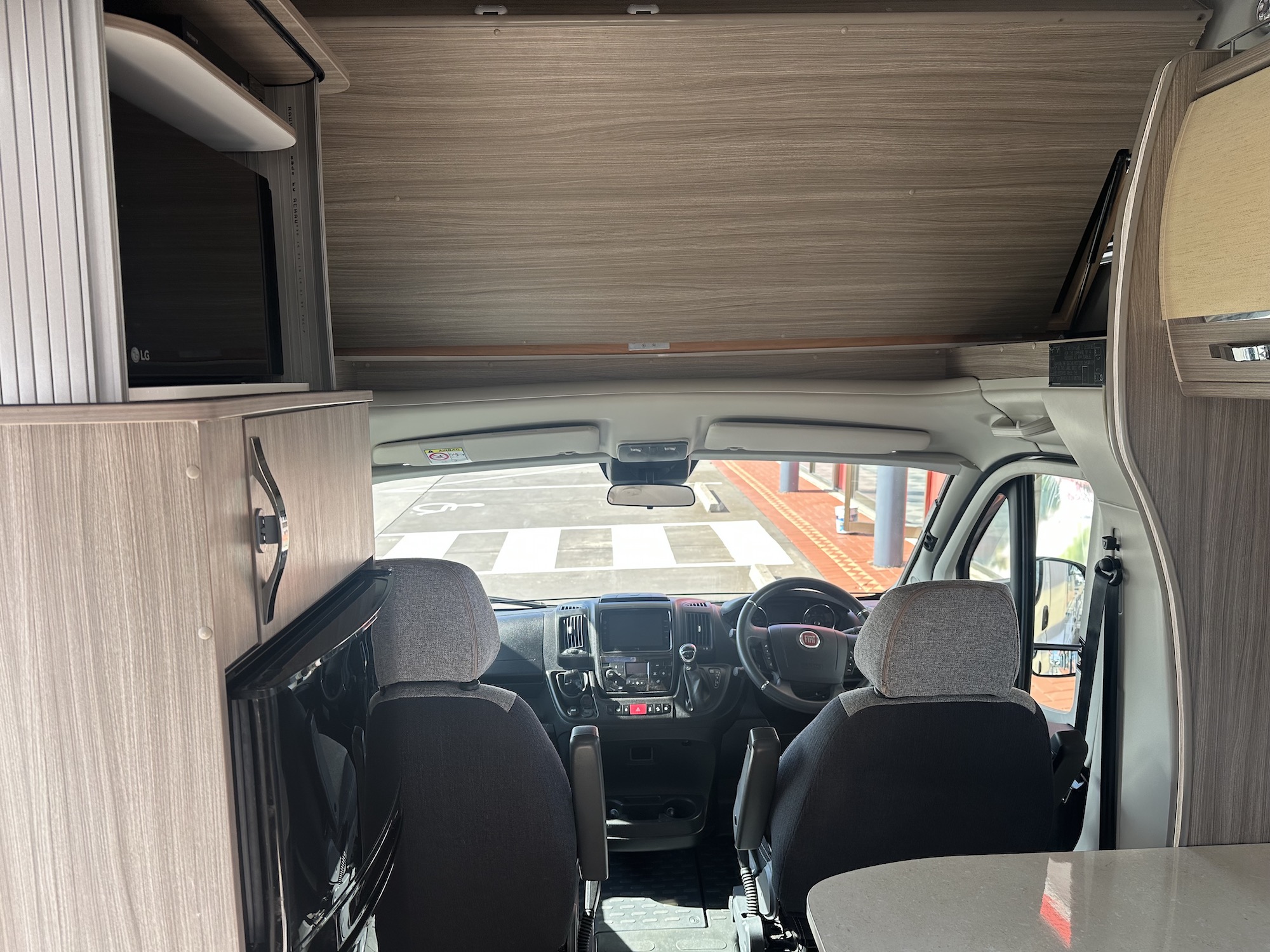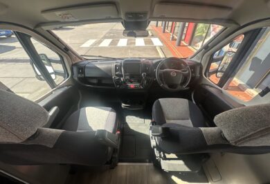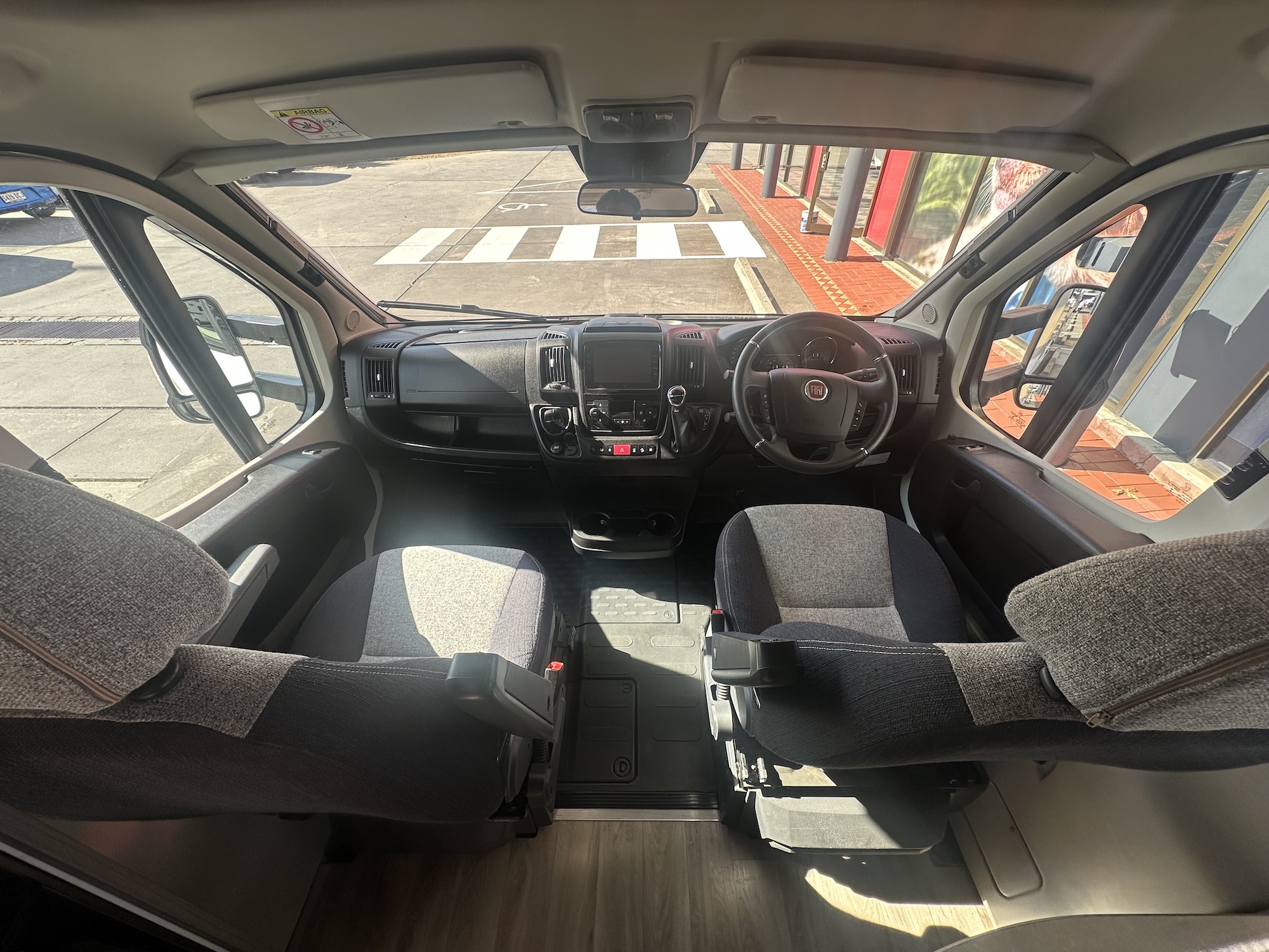 This van has been exceptionally well looked after and has low kilometres – averaging just over 7,000km a year, with a total of 29,560km. Step inside and you’re welcomed by the spacious rear club lounge, perfect for relaxing or entertaining. When it’s time to sleep, just remove a couple of cushions and press a button — the electric east-west bed glides down, ready to use. In the morning, press the button again and the unmade bed tucks neatly back up into the roof, out of sight. Powered by a Fiat 2.3L turbo diesel engine with a smooth 9-speed gearbox, it’s ready for comfortable touring.