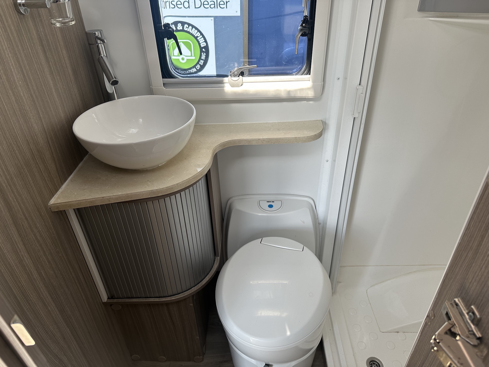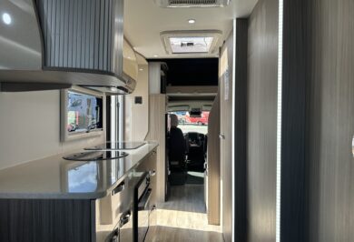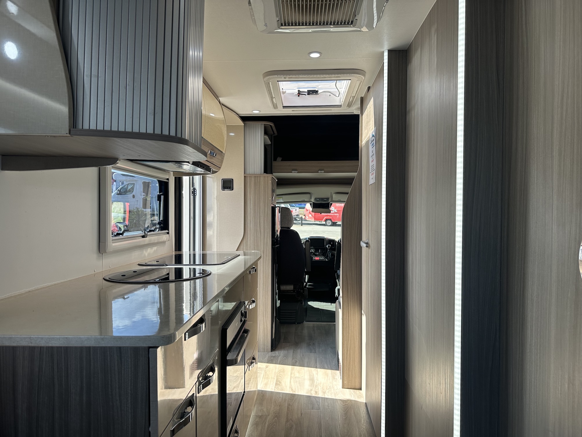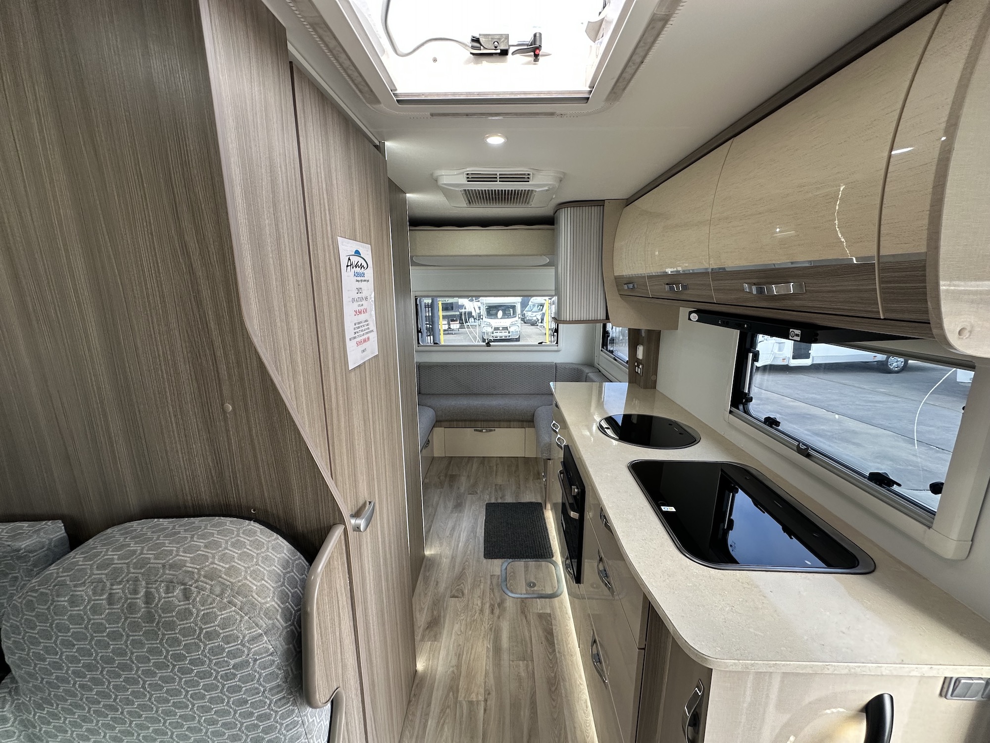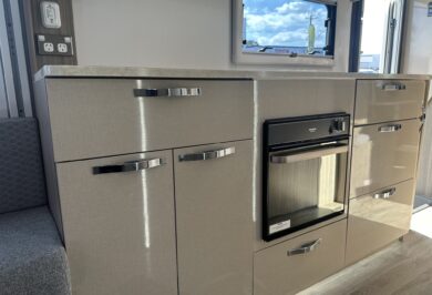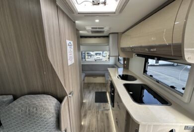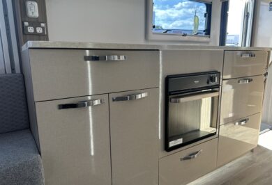 This van has been exceptionally well looked after and has low kilometres – averaging just over 7,000km a year, with a total of 29,560km. Step inside and you’re welcomed by the spacious rear club lounge, perfect for relaxing or entertaining. When it’s time to sleep, just remove a couple of cushions and press a button — the electric east-west bed glides down, ready to use. In the morning, press the button again and the unmade bed tucks neatly back up into the roof, out of sight. Powered by a Fiat 2.3L turbo diesel engine with a smooth 9-speed gearbox, it’s ready for comfortable touring.