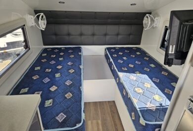 Compact in size but huge on features, the Crusader Chameleon SV is your ticket to go anywhere freedom. Whether it’s a weekend by the coast or a remote outback escape, this tough little van has it all – from the convenience of a shower/toilet combo to the comfort of a queen bed that converts to singles.