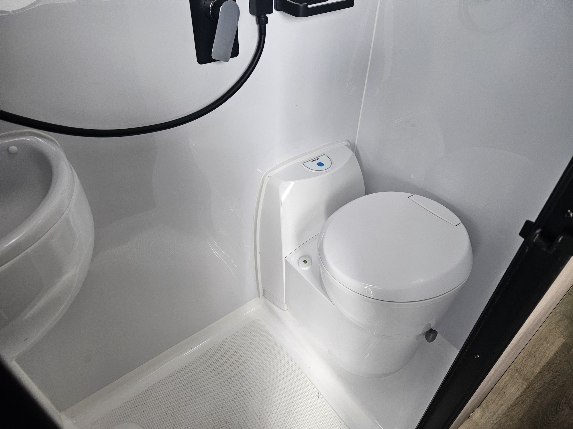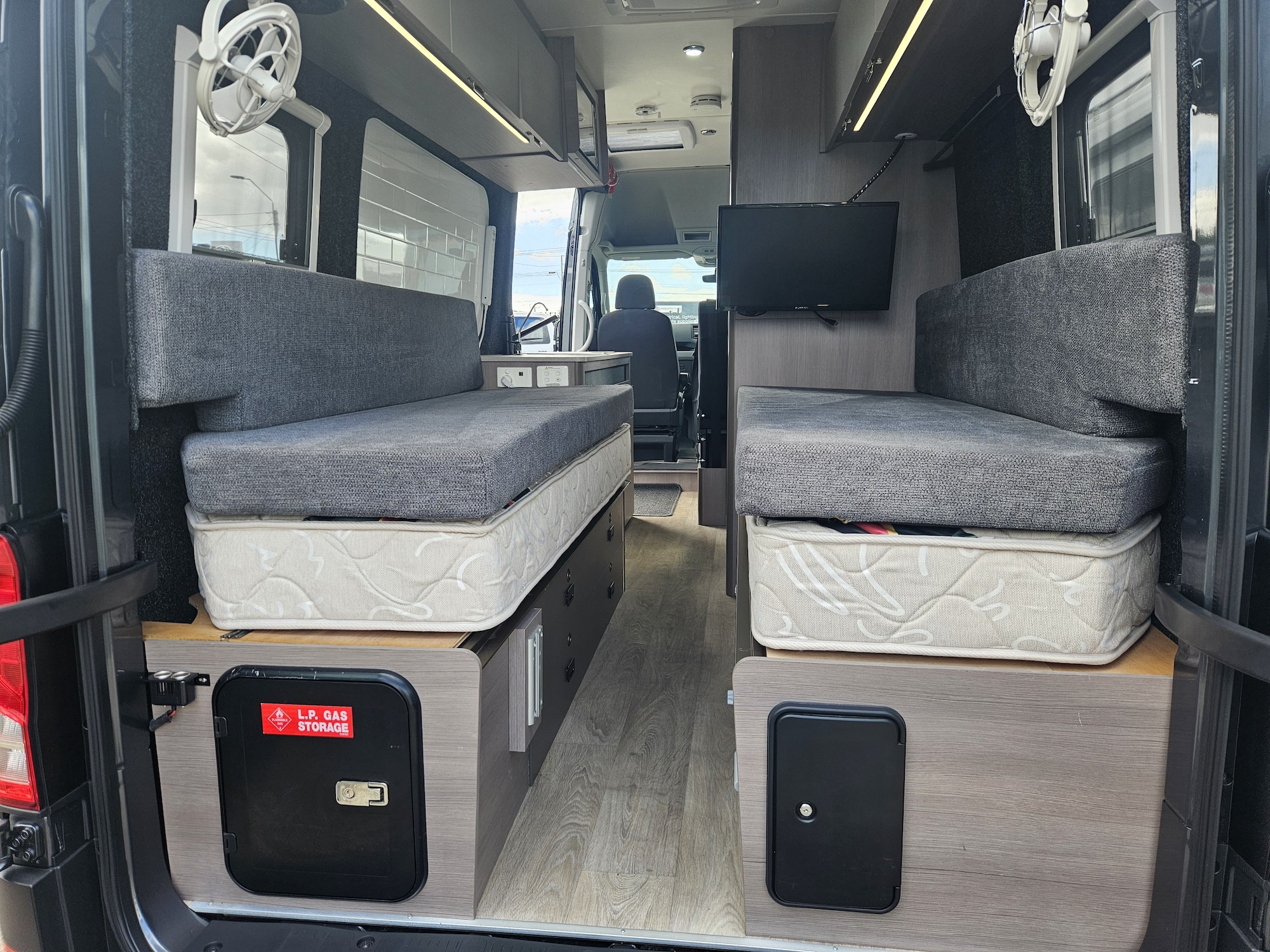 Inside, it’s set up for comfortable travel with two single beds, a full ensuite with shower, toilet and vanity, and a well laid out living space that makes longer trips easy. There’s a 2 gas cooktop, sink and 3 way fridge, along with a TV, inverter and battery management system.