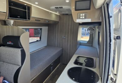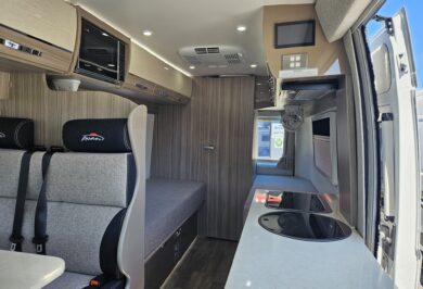 Built on the award-winning Fiat Ducato, this compact motorhome is simple to drive, practical to live in and packed with thoughtful features. Inside, you’ll find elegant European-inspired furniture, durable construction and a clever layout designed to maximise every centimetre of space.