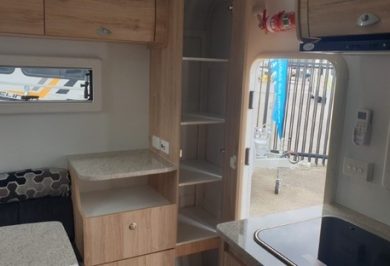 The smart and practical design of this van means there is no wasted space and includes all the features you need for a comfortable holiday. This practical layout boasts a combination shower/toilet, large L-shaped seating area, full size fridge and plenty of storage.