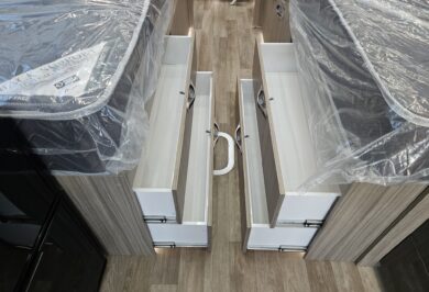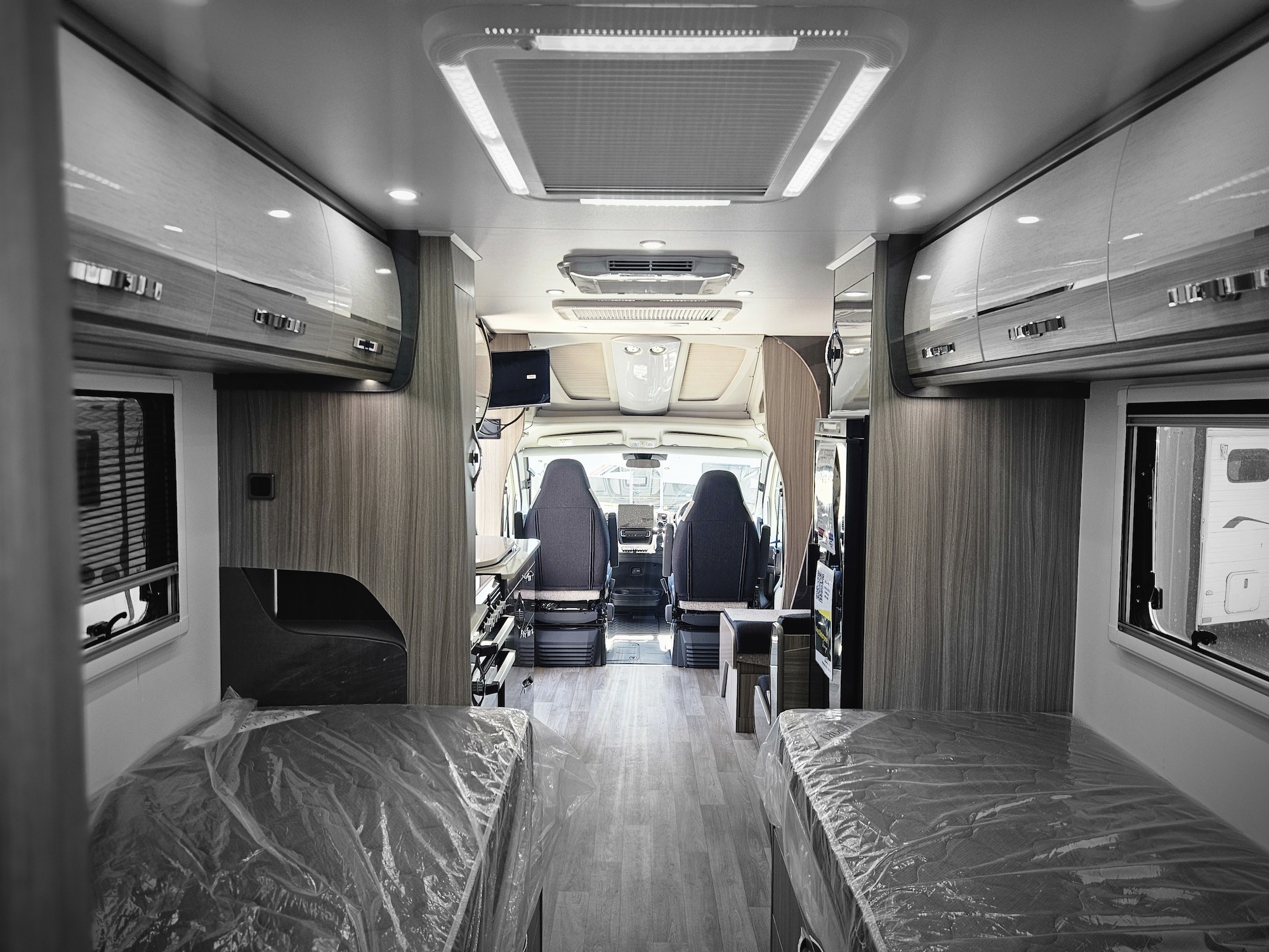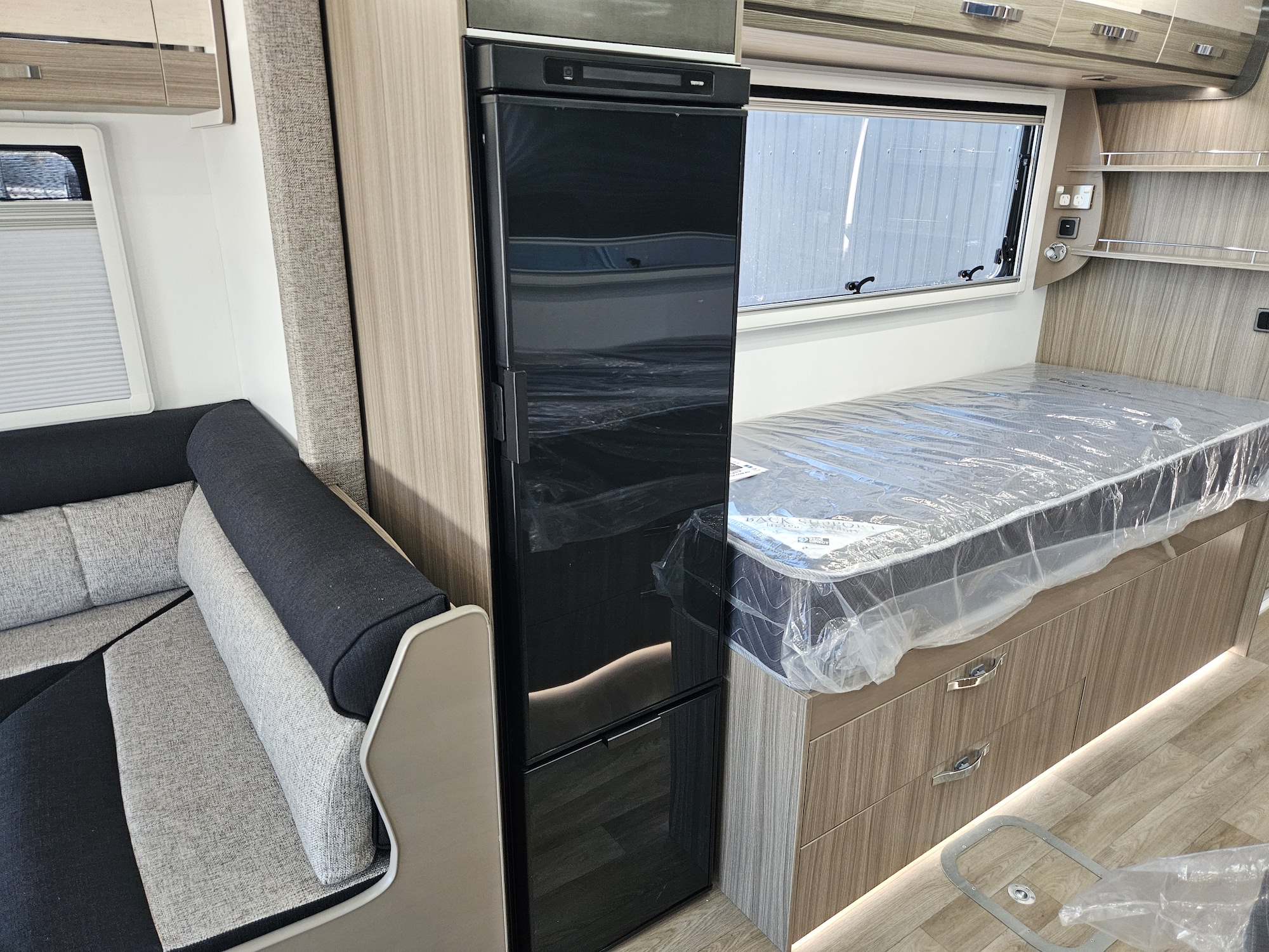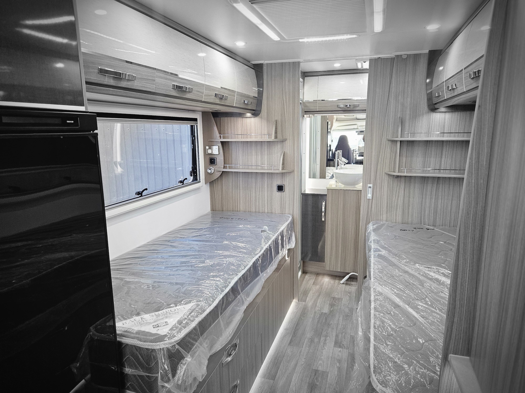 The innovative electric slide-out creates a spacious club lounge, opening up the interior and giving you a true sense of space once parked. With twin single beds and a rear ensuite, the layout is practical, comfortable and perfectly suited to extended touring.