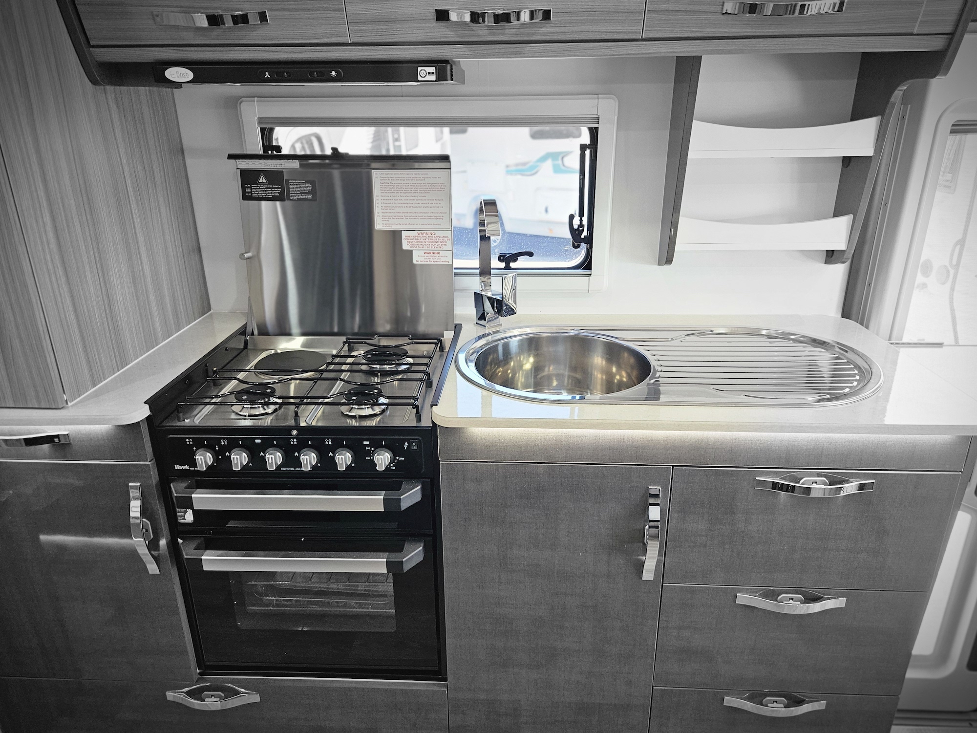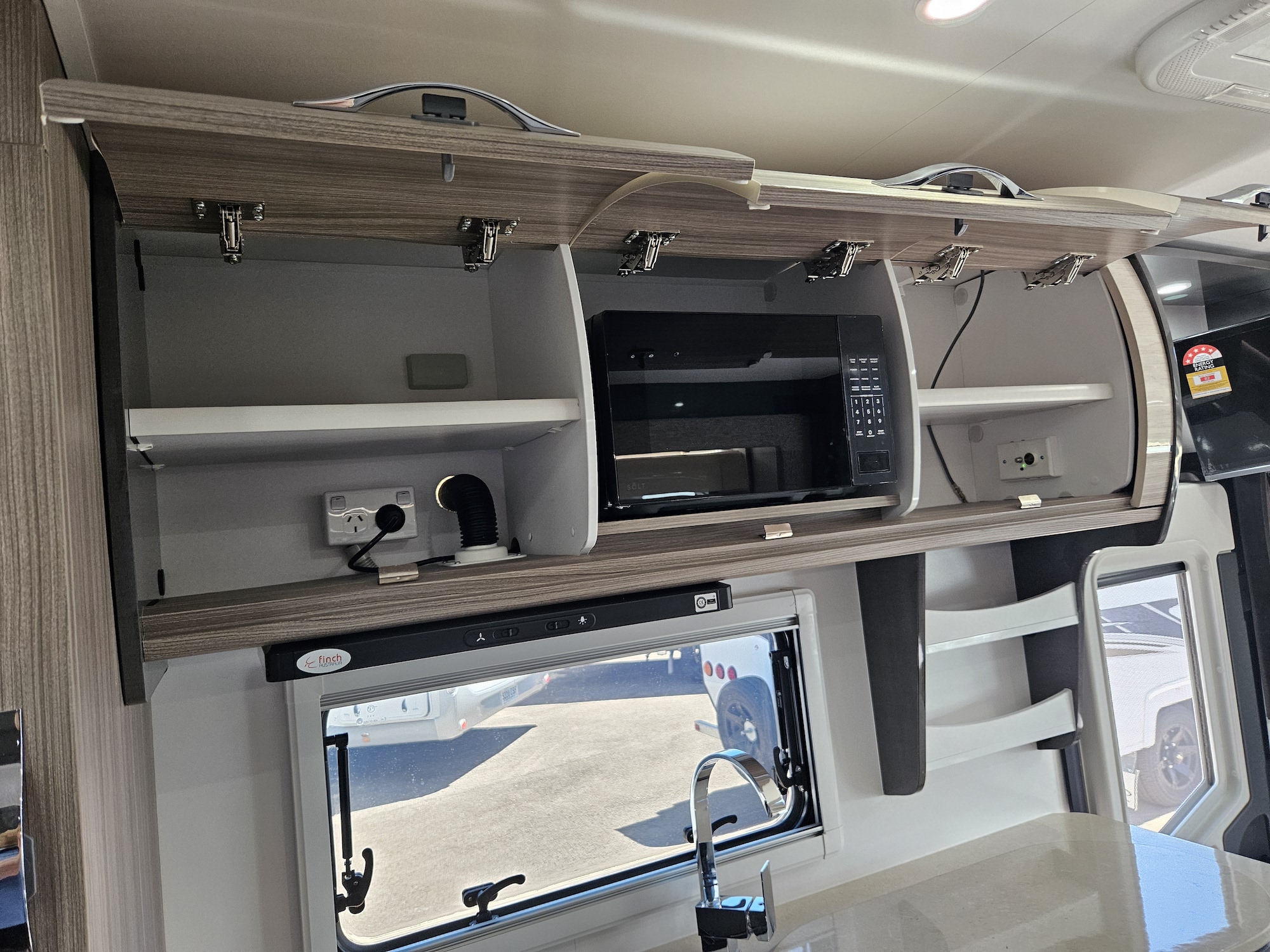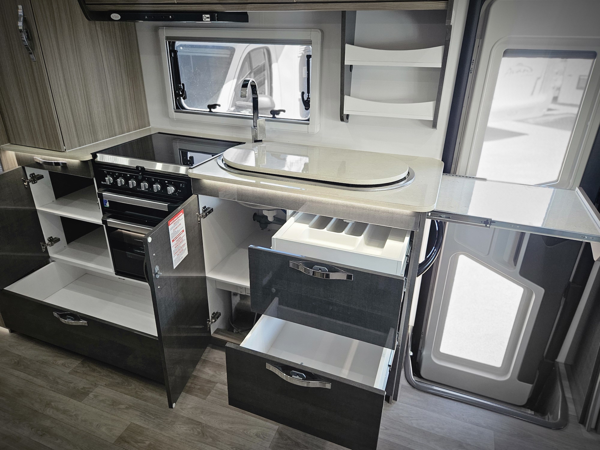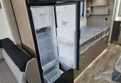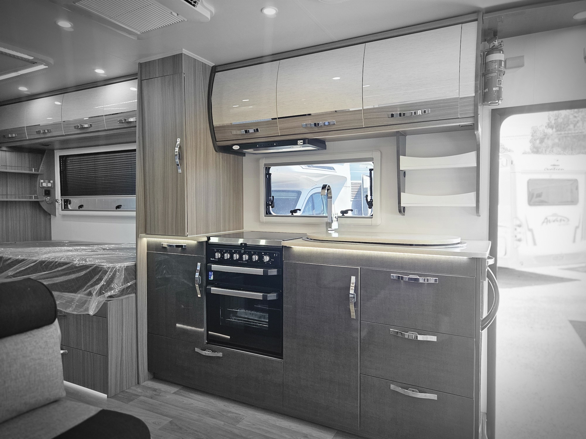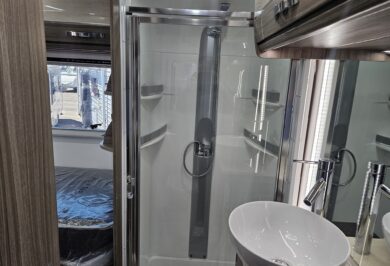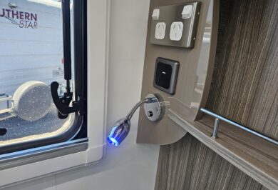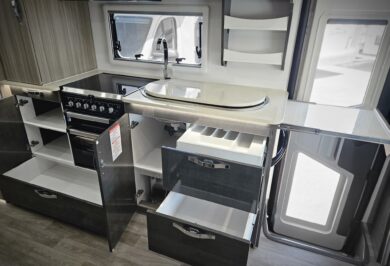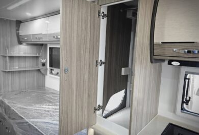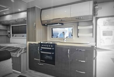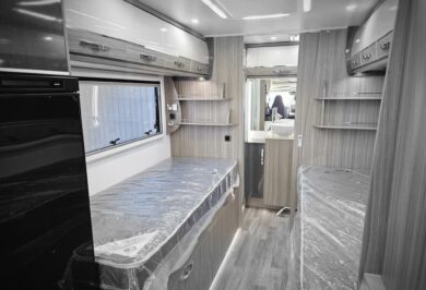 Inside, the Ovation M10 feels refined and well considered, with beautifully crafted cabinetry, soft-close fittings, quality appliances and clever storage throughout. Features such as air-conditioning, double glazed windows, a full kitchen, LED lighting and a well-appointed bathroom make life on the road easy and enjoyable.